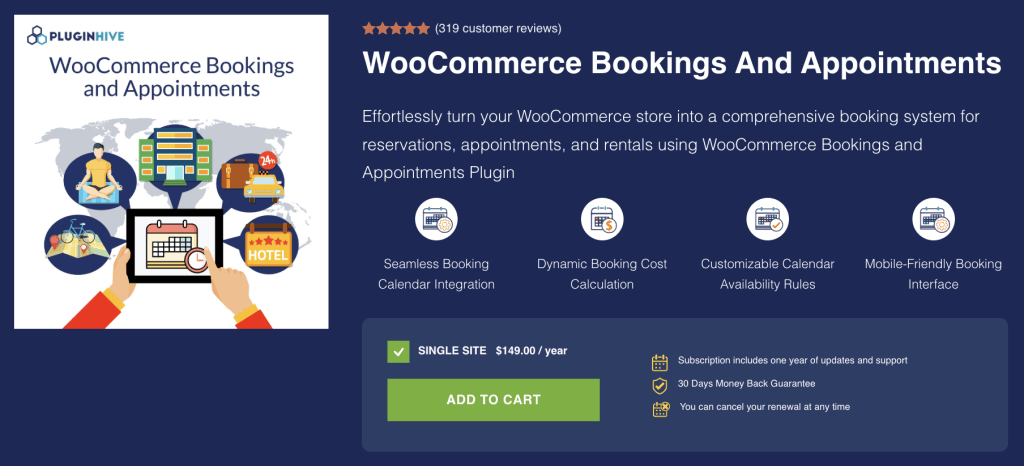 The WooCommerce Hotel Booking plugin empowers you to manage bookings using WooCommerce as the backbone.